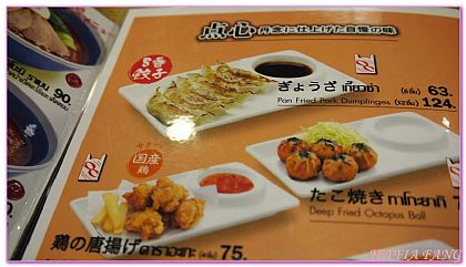 在泰國大約有90多家的『8番拉麵Hachi-ban Ramen』也是當地知名的連鎖麵店,所以在許多購物商場都有設點,每每朋友嘴饞想吃拉麵時,都能在環境舒適的「8番拉麵」依不同喜好選擇口味,傑菲亞娃偏好招牌豚骨口味口味,而朋友則喜歡辣辣的地獄拉麵。除了麵食之外,我們也常會點炒飯、和風炒菜、煎餃及炸雞一起分享,左夾右夾~好快樂的「泰式和風」喔!