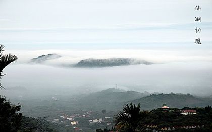 往上走不一會看到「雲湖碼頭」..實在疑惑,傑菲亞娃不是在山上嗎??怎會有碼頭ㄋ?再看看農場名字「仙湖」,昏…我是在哪啊?原來仙湖沒有湖….看看資料上寫著:因為晨間、黃昏及雨後的雲海, 讓山頭看起來像座湖中小島,在地居民們便將此處暱稱仙湖。但事實上導覽告訴我們,要能看見這傳說中的「仙湖」要有幾個條件;夠冷、夠濕、溫度夠低(通常八度以下)大概一月才能見到此人間美景。雖沒看到傳說的仙湖,但往下看到嘉南平原的山頭樹木也是翠綠一片的極美。