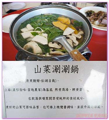 餐桌上有很多「菜單小故事」看看甚是有趣,主鍋是「山菜涮涮鍋」野菜火鍋,以橄欖雞湯為底,加上大量野菜,果真養生好吃,大家有空可以來試試這田園料理。