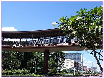 洲際飯店美麗的木格設計延續天橋上,天橋下來就是「BluPort Hua Hin Resort Mall」,這是華新最大的購物商場,商場佔地20萬平方公尺,進駐品牌餐廳非常多,商品多元,客人好選擇。