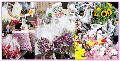 『帕空花市Pak Khlong Talat(ปากคลองตลาด)』是曼谷最大的花市,接近此區已經看到一堆堆賣著花朵的住宅攤家,走進市場實在是花海啊!各式各樣的花,本地的進口的都有,從當地品種(EX.茉莉花、菊花、非洲菊、蘭花、百合花、玫瑰花)到進口品種EX.鬱金香、金魚草、鳶尾花、洋桔梗、飛燕草..等等,應有盡有。除了花朵外,跟花有關的用具及配飾也都豐富,像是:花瓶、花盆、花泥、絲帶、花繩、細枝..等,有些花商提供特殊活動所用的花樹花環的服務,所以很多相關業者都會來此訂購。