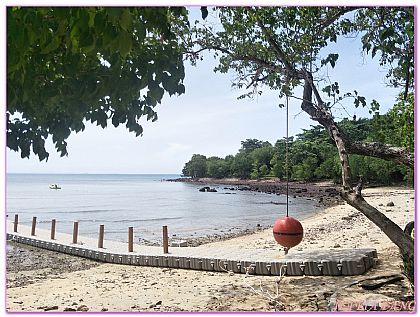 傑菲亞娃一行人是由朋友雅寶安排包快艇的,因此早上就騎摩托車到碼頭旁邊的沙灘上船,整個行程下來還算舒適,我發現沙美島及附近的島嶼常有沙灘與礁岩互相交錯,每個沙灘都像遺世獨立的秘境,風景自然美麗。
