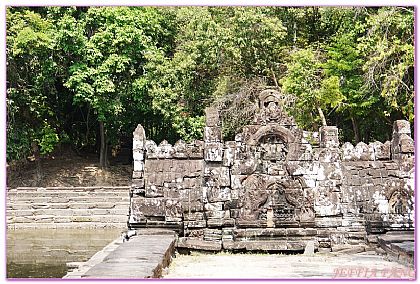 在達宋將軍廟西邊約2.3KM的『涅槃宮NEAK PEAN』是微笑國王雅巴爾曼七世建造的,NEAK PEAN是兩條蛇糾纏的意思,兩條蛇環繞的基壇漂浮在中央的水池,彷彿蓮花般呈現,所以要看到這涅槃宮要走上一大片水池的棧道才能看到喔!