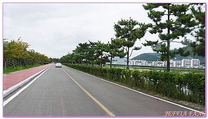 釜山觀光巴士一路會經過幾個點,我們在「岩南公園」及「峨眉山展望台」分別停了20及40分鐘後,來到了『洛東江河口生態中心』。一抵達,我們就在工作人員的指示下搭上了園區車,在綠油油一片的溼地中,特別感到『寧靜』,很喜歡這樣的氛圍,沿途雖然是用韓文解說,但光欣賞這樣的景色就覺得不虛此行。