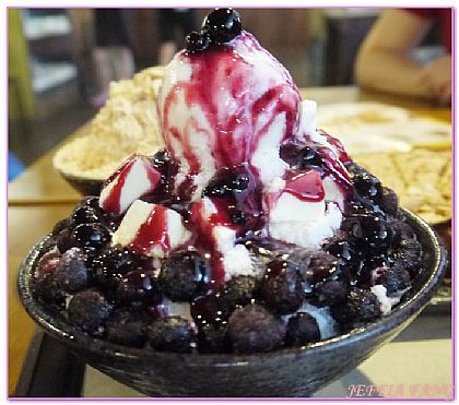 基本上這兩樣我都淺嚐就主攻另一樣了,那就是季節商品酸酸甜甜的藍莓冰,沒辦法,花生粉的甜點冰品本人不熟,但看那些小妞們兩三下就喀光,是真的不錯啦!