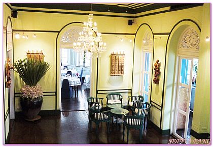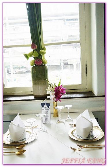 曼谷的泰國藍象餐廳外觀是很法式殖民風的柔黃色,它可是1903年柚木所打造的百年建築喔,一二樓是餐廳,主要設計色就是藍與白,室內尊榮又典雅的復古設計,用餐起來特別有感覺,餐廳提供的佳餚都是道地的泰式料理,吃素都不擔心,事先告知店家即可,服務週到、價錢合理,傑菲亞娃個人認為是家『超優值』的餐廳。