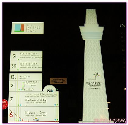 搭乘地鐵到A20「押上駛OSHIAGE STATION」B3出口步行一分鐘就到「TOKYO SOLAMACHI」了,這棟建築物的輪廓線條有著日本傳統建築的線條,整體呈現向天空生長的巨大樹木,故稱之為SKYTREE,一旦夜幕低垂時到七樓的「TOKYO SKYTREE TOWN」第一與二展望台看出去的夜景,想必璀璨非常。