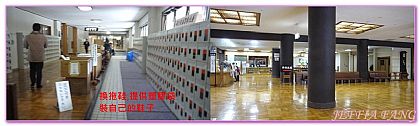 來到『永平寺』山下立馬因參天古樹有了沉靜的動機,步上緩坡慢慢往前,忽見一個大大時鐘,一下把我拉回現代,更訝異的是,參拜者入口處還有自動售票機,這也太先進的寺廟了吧~換了寺方準備的拖鞋,伶著自己的鞋子開始沿著指標參觀。