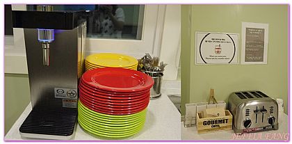 一般韓國飯店不太提供早餐,『SONO BUSINESS HOTEL』提供早餐,但很不同的是要自己去做,在二樓的廚房裡,每天到了早餐時間就會在大冰箱中放上果汁、雞蛋,也會在餐檯上放著吐司及果醬,房客只要在早餐提供時間都可到二樓的廚房內自行料理,這也算是有趣另類的早餐ㄋ。