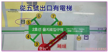 PS.2號出口封閉,如無行李走1-1上來較快,如需電梯EXIT NO.5 對面是LOTTE 百貨過十字路口過來即可。