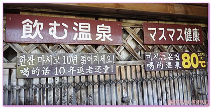 飯店CHECK IN把行李放下後,便走到對面以「SUNQ PASS」繼續搭乘「龜之井」巴士到終點站的「鐵輪KANNAWA NI BUS STOP」,探訪別府八大的其中六大溫泉之最『鐵輪溫泉』。(見照片說明)