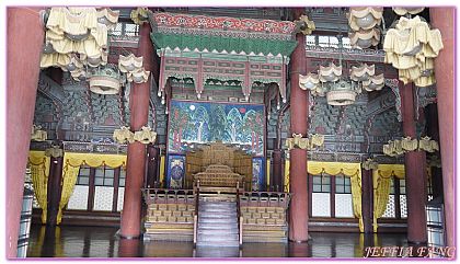 再來都是昌德宮的建築物群了,首先看到的是「仁政殿」是昌德宮的正殿,意指「仁心政治」的仁政殿不僅是君王與臣子們舉行朝會的地方,亦作為舉行君王即位儀式與結婚儀式、接見外國使臣使用。