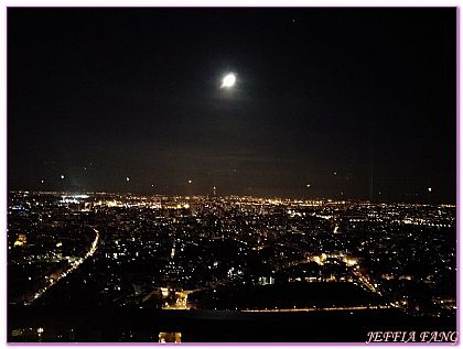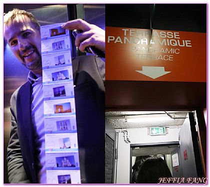 循著工作人員的帶領,我們很快在38秒內上升到56樓,這棟城市建築展示著現代舒適空間,落地窗的包圍下,完全無死角的看見全巴黎,好美啊!爬上頂樓,全景的露臺擁有巴黎最美的夜景,以「艾菲爾鐵塔」為圓心,四周都是璀璨無比的夜景,當看見鐵塔放射出的光芒,不僅深感美麗還另人感動,霎那間才相信原來我真的來到巴黎,且在最高的觀景點欣賞著巴黎美輪美奐的夜景。已醉~~