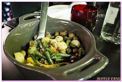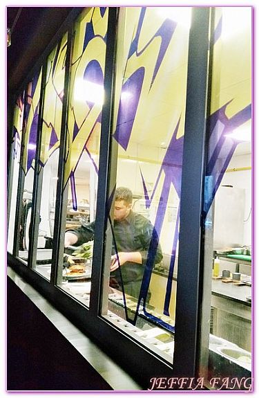 走進右手邊的餐廳,黑色設計搭上紅紅的光線頗有夜店的FU,令傑菲亞娃大開眼界的是店內的「座上賓」男的帥、女的俏,真是顏值超高的畫面。我們被安排到最裡面的包廂,高高的椅子明顯有著喝酒吃飯的好架式,法式料理配上這情景著實安撫了我們當天抵達疲憊的心靈,同行夥伴們對法式料理超有心得的,看著後面透明玻璃的廚師們忙著,說著法式著名的CHEESE搭上美酒佳餚的讓我好生羨慕,沒辦法傑菲亞娃真的對美食沒有太多概念,但好吃是真心不騙的喔~