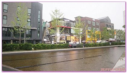 造訪當時下著不小的雨,我穿著雨衣隨著凱西小姐趕緊先找找到韓劇《太陽的後裔》拍攝地『B plus M』女主角慕妍的家,造訪當日剛好碰上整修期間,還好主人讓我們進去看一下,真是感謝啊!『B plus M』實際上是一家展示綠色環保木材傢俱的展示空間,而劇中出現的只有客廳的沙發(女主角喝醉跳沙發、懷念BIG BOSS的情景)及廚房,以後會不會保留其實不太清楚,但我相信以後來到這家應該可以看見不同環保傢俱的組合風貌。