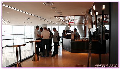 我們一行人先從一樓EXHIBITION FLOOR展示了解其安全結構EX.巨型鋼柱及八大樑柱支撐重心等,也透過超大畫面欣賞韓國的自然美和文化遺產。然後搭乘電梯前往被列入三項金氏紀錄的『SEOUL SKY』,由於看過不少高塔,電梯幾乎秉持一樣的公式:璀璨無比,很是美麗,但這電梯居然保有「世界最長輸送距離」與「世界最快雙層電梯」兩個紀錄,實在佩服。