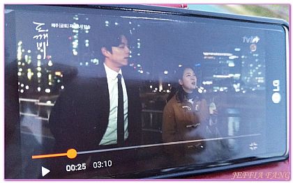 這個公園還規劃了很好的跑道,看到很多人輕鬆的慢跑著,傑菲亞娃都想一起跑了,由於知名韓劇「Doctors」及鬼怪都來此取景,我們一群人就開始拼命對照韓劇中男女主角的場景,鬼怪這部韓劇蠻有意思的,他不准拍過的場景設有他們的海報,把乾淨的公園還給居民,不像一班的場景立馬成為觀光區,這令我佩服佩服,也因為這樣,一群人努力找個鬼怪的畫面對著場景比來比去的也頗有意思的(見照片分享)。