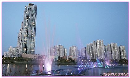 傑菲亞娃◎韓國仁川【青蘿湖水公園(청라호수공원)】湖水中的城市倒影、Doctors及鬼怪的拍攝場景、噴泉水舞秀
