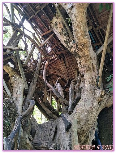 走入渡假村就能感受到身處花園的輕鬆,雖然沒有入住此飯店,但還是好奇的來到樹屋區,只要是樹屋便會被圈上「PRIVATE ZONE」(閒人勿進就對了),但還是想看看近看樹屋,再跟服務人員確定沒房客時,請他放行讓我爬上去拍個照,真的是要循著樹幹爬上去ㄋ,大約一層樓的高度,在樹屋內感覺涼爽清新,我想房間本身就不需要多考量了,能住在樹屋就是酷啊~
