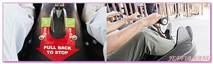 由於『SKYLINE LUGE』坐落於閑麗海上國家公園,因此門口選定安全帽,我們需搭乘「SKYRIDE空中吊椅」來到山頂滑車起點,光是坐空中吊椅懸著雙腳欣賞腳下跑道及一旁閑麗國家公園就覺得興奮了。大夥依序的選了自己的「座車」認真聽從專業人員的教導,知道如何駕馭此台車後,練習一下段路後便開始往下沖囉…..雖然目前只有長1.5公里的跑道,但這一路上可以輕鬆的控制車速奔馳在車道上,唯獨轉彎時需要技巧的超越,簡單來說就是「賽車」..太好玩了啦,一路衝下去要不是工作,真的很想再來一次ㄋ。