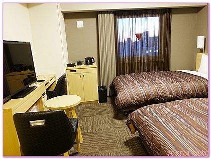 有186間客房的『ROUTE INN』,房間是以大地顏色加上跳TONE黃色來搭配淺色系的木頭,如此設計有種親民溫馨的賓至如歸。