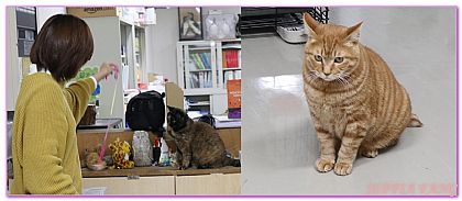 要離開海鳥中心我們突然看見辦公室內兩隻漂亮貓咪與人們開心的玩著,原以為是工作人員飼養的,結果這貓兒都是從天売島上抓回來等好心人士認養回去的,領養貓兒倒也稀鬆平常,我奇怪的是為何天売島上會有貓啊?原來為了好好保育觀察島上生態,來往的船隻不小心讓老鼠也上島了,為了抓老鼠於是把貓送上去,貓也就不小心繁殖了120隻貓寶寶,這下好了有可能危害到鳥蛋,於是海鳥中心拼命把貓抓回來飼養,等好心人來認養回去。工作人員說目前還有10多隻等待抓回喔,心理OS海鳥中心真的是天売島的最佳管家耶)。