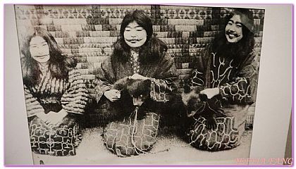 愛努族無論男女還是有刺青的習俗,大多會在嘴及手上,基本上並不是圖騰的樣子,傑菲亞娃看到女性分三個階段:12.13歲、15.16歲、20歲,其中延長嘴輪廓的刺青,就這樣越來越大,到了20歲以後已經像是雪盆大口,有點嚇到,但愛努族人們的五官超明顯,女孩們就算有刺青在臉上還是好漂亮喔,難怪有來自西伯利亞血統的傳說,是真的與日本人完全不同。