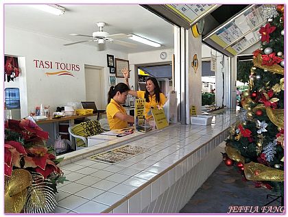 船隻接近碼頭時,傑菲亞娃就看到一大片圍著浮球的區域,顯然是規劃浮潛的安全地帶,跟著人們下了船,才發現這島上綠油油的一片被雪白的細沙圍繞著,一眼望去盡是「海闊天空」的歡樂。
