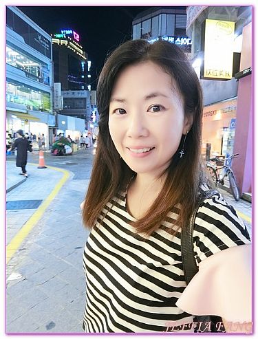 傑菲亞娃等人在旁邊晚餐後才開始逛忠壯路,有人說是首爾明洞的縮小版,之所以不想稱之為明洞是因為明洞是出了名的保養彩妝品的黃金戰區,但「忠壯路」實在沒這麼多彩妝店,有點像大邱的「東城路」或是大一點的順天中央路的免稅商街。我雖然因為時間有限只逛了星巴克的那一段,整條街看到的彩妝店也才一兩家,整個比例過少,不過服飾店是真的多啦,且重複的連鎖品牌也不少,但我很確定一件事,同樣的衣服或商品跟首爾釜山比起來,忠壯路的訂價真的比較便宜,ex.白T首爾賣13000韓幣,忠壯路賣9900韓幣,一樣的Hello Kitty電風扇釜山賣13000,這裡才賣10000韓幣,整體來說還是滿好買的啦。
