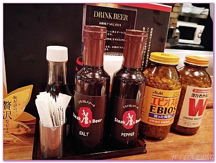 好~先簡單介紹『素敵庵Sutekian 』在東京有一家,鹿兒島有兩間店1.中央車站、2.本店,傑菲亞娃是到離天文通僅200公尺的本店,從店招牌上秀著Stean & Bear不難看出美食風格。「素敵庵」正式的英文名稱為「Steak&Beer Lovely An」,除了好吃的和牛外最令人驚豔的便是那700CC的德國啤酒,據說最大的有1.3公升ㄋ,其他像是紅白酒也很不錯,總之配牛排的「元素酒」店家都有。
