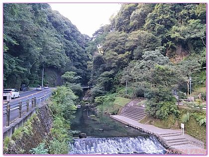 因此後人為了紀念這位偉人便將霧島山上的溫泉命名為『塩浸溫泉龍馬公園』,一下車就感受到山上地傑人靈的好氛圍,走到橋上,山谷溪流的風景真的好清新好美麗。公園除了天然露天溫泉外也造室內大眾池以及免費「龍馬與阿龍的結緣足湯」,我們一行人就來這泡一下腳,細雨紛飛的當下覺得好溫暖喔。