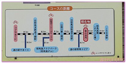 由於這裡是以舊有的鐵道改建為成的,因此騎累了不用擔心,可以到「耶馬溪平田站」稍作休息、上上洗手間,再繼續向前騎,真的很方便。(見照片分享)