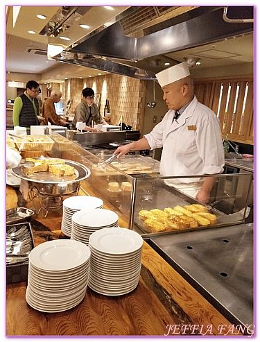 第一輪泡湯後,就是精彩的晚餐囉,大川莊很特別,進入餐廳帶位後,就自行去自助餐檯選取佳餚,菜色不但豐富也好吃,尤其是季節性食材,新鮮又特別,有別於一般溫泉飯店的會席料理,很值得大家細細品嚐,這一餐根本撐爆了,隔天早餐也是豐富極了(見照片分享)。