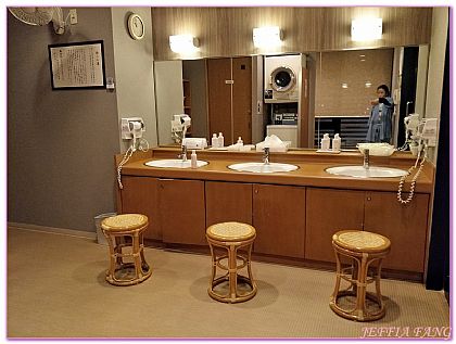 過了小小的斑馬線來到氣派門面的飯店,櫃檯辦理好入住手續,就會拿到一張飯店設施說明ex. 14樓大浴場的使用須知:開放時間:15:00~2:00 / 5:00~10:00進入女生的浴場需使用密碼。有浴場是我當初選擇重要原因,雖然小但能好好泡個湯就是能消除疲勞,甚好。
