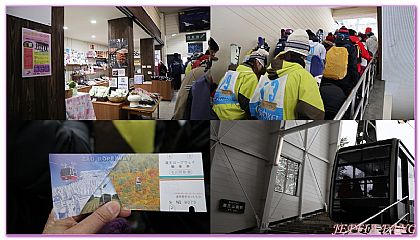 『藏王纜車』通常10~15分鐘一班車,分為不同的兩種纜車到兩個站:1.標高1331M的「樹冰高原站」此為大型纜車可乘載人數較多,約10分鐘、2.標高1661M高的「地藏山頂站」,從「樹冰高原站」換成小的纜車上去,原則上分為2 Line排隊,右邊滑雪客搭乘,觀光客則搭乘左邊,但這次傑菲亞娃排隊都是同個LIne,出示纜車票讓工作人員知道我不滑雪,他就另外安排跟滑雪的同部纜車上去,約莫7分鐘就到藏王山頂站。(見照片分享)◆詳情請參閱【藏王纜車】官網