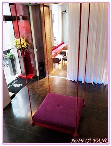 Lobby醒目的紫紅大吊床突顯了酒店跳TONE的室內風格,由於這家酒店在2016年到米蘭時就來過,但僅到頂樓Aria喝個調酒並未入住,當下就是看到這吊床覺得飯店雖然不大卻極有可看性。