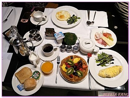 『Sina The Gray』可說是Design hotel,許多設計細節隨處可見,設施比較少,僅頂樓的Aria及2樓的餐廳。走上夜店樓梯來到餐廳,昏暗的空間搭上黑白紋的靠枕很有神秘感。餐檯上的食物雖不多卻非常精緻,還能自己做鬆餅ㄋ,帥帥的服務人員為我們點了所需茶飲及煎蛋後,姊妹們便好好享受豐富的義大利早餐,真好。