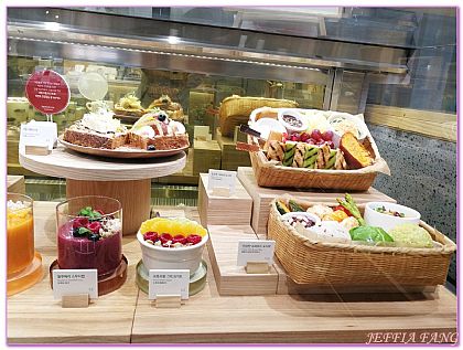「innisfree」不是只有漂亮的空間喔,它的餐點也好吃的很呢,這從特殊的菜單還有櫥窗可以看的出來東西很多。由於我們是來用早餐的,除了特定早餐外,朋友還選了店內招牌「舒芙蕾」,取餐的時候看到食物就覺得這擺盤、顏色也太美了吧,回到位子上又一陣猛拍,認真吃我們的早餐已經是半小時後了,但一點都不失原來的美味,好吃極了(見照片分享)。