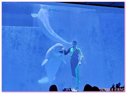 象徵和平與友愛的米拉+尼克拉是對可愛的小白鯨,牠們用獨特的方式向人們傳遞著祝福,ex.天使之吻、天使光環、一箭傾心…等,其萌達達的眼神、可愛的笑容征服了全訪客,與培育員完美的「海洋之心」更是充分表現人們與動物的和諧相處,這一幕幕實在珍貴。傑菲亞娃非常慶幸自己認真看完這表演,更開心有此般的領悟,太有意義了。