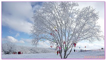 Ps. 『霧淞(日本稱之為樹冰)』:霧氣中含有無數微小的水滴,在酷寒的天氣裡,小水滴接觸到溫度處於冰點以下的物體表面,會立刻凍結成為純白冰晶,無論是石頭、樹木、植物無一閃過,而最奪人眼球的就是大量凍結的冰晶即是「霧淞」。