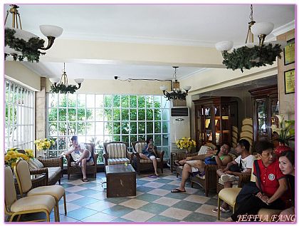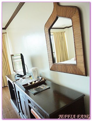 房間傳統菲式帶點西式的熱情,黑與橘搭配得天衣無縫,基本的設備都齊全,EX.電視、迷你吧、免費礦泉水等;每間房還有專屬陽台;而看出去的景色除了美麗的花園;也有浩瀚的海景喔!。